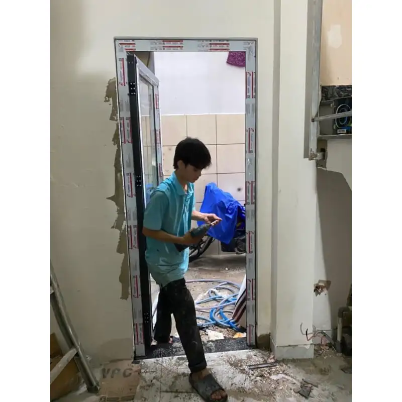 Hình ảnh lắp đặt cửa nhôm Xingfa cho công trình quận 3 – Kèm khóa vân tay