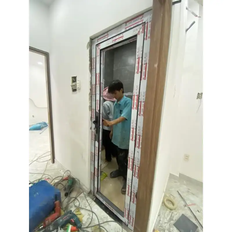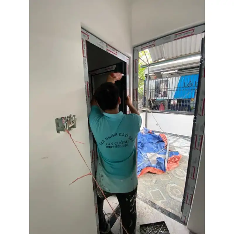Hình ảnh lắp đặt cửa nhôm Xingfa cho công trình quận 3 – Kèm khóa vân tay