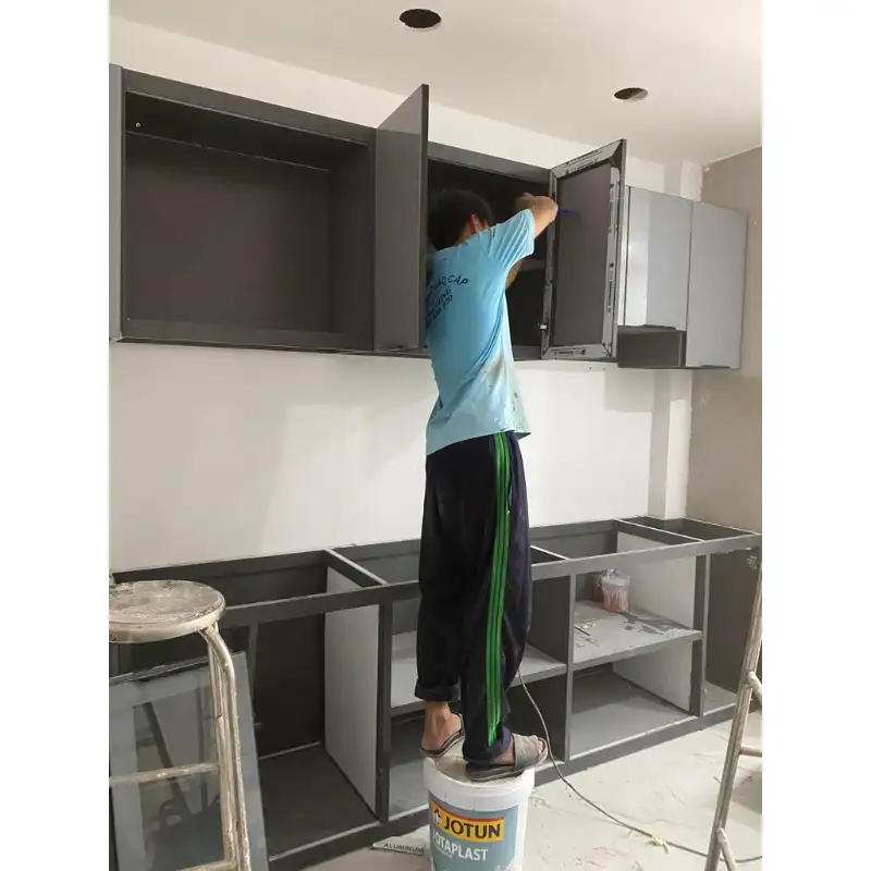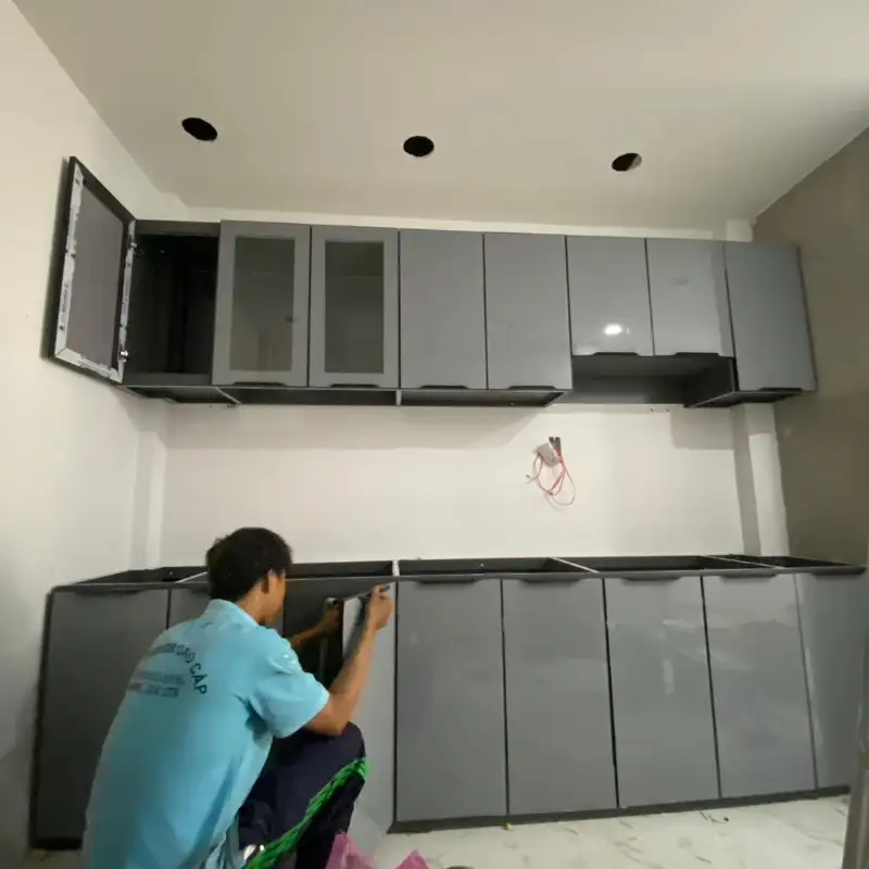 Lắp đặt: Thùng bếp – tủ bếp nhôm – cửa cánh kính – kính phun sơn cường lực