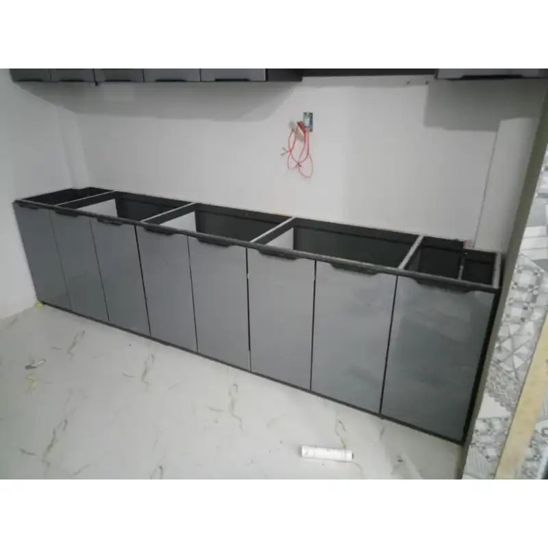 Hình ảnh Công trình quận Phú Nhuận ngày 16/6 – Thùng bếp – tủ bếp nhôm – cửa cánh kính – kính phun sơn cường lực