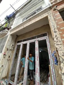 Lắp đặt cửa nhôm xingfa, kính cường lực, tủ bếp, thùng bếp nhôm cánh kính công trình Q. Bình thạnh ngày 7/9