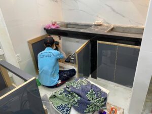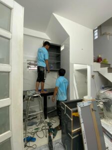 Lắp đặt tủ bếp nhôm cánh kính – cửa nhôm, cửa bếp nhôm khách Q. Bình Thạnh ngày 21/9