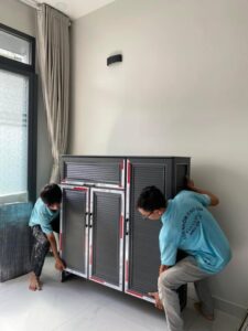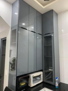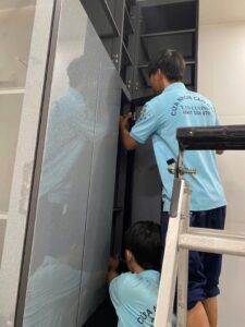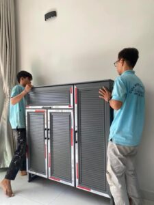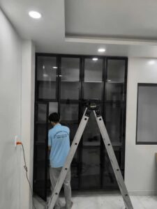 Lắp đặt tủ bếp, tủ quần áo nhôm cánh kính, kính cường lực – Tủ kệ giày dép nhôm nội thất khách Q. Bình Thạnh ngày 31/8