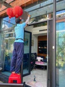 Lắp đặt – Cửa nhôm xingfa, kính cường lực cho công trình . Q. Bình Thạnh ngày 21/8
