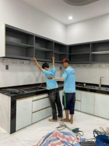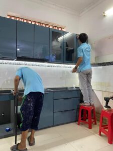 Lắp đặt: Thùng bếp , tủ bếp khung nhôm cánh kính , kính phun sốn ...
